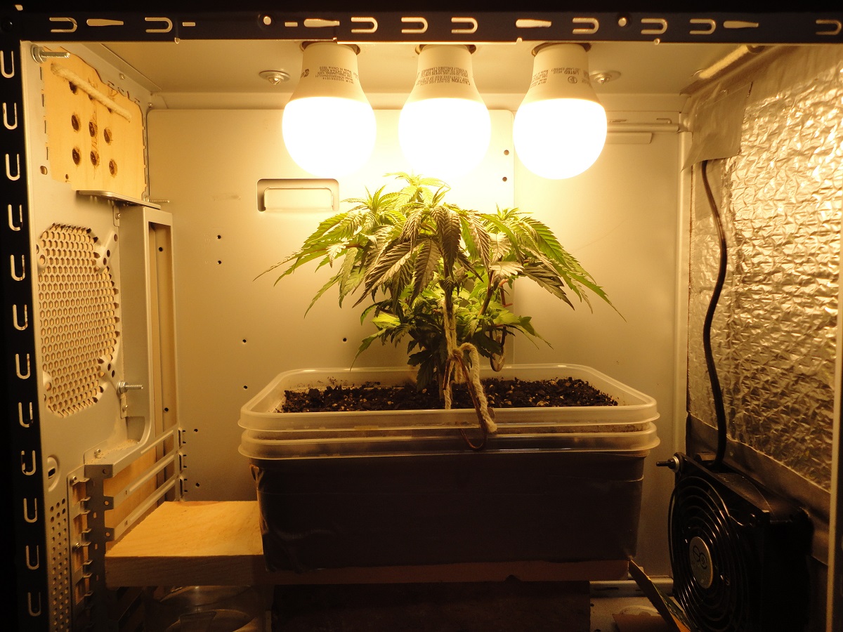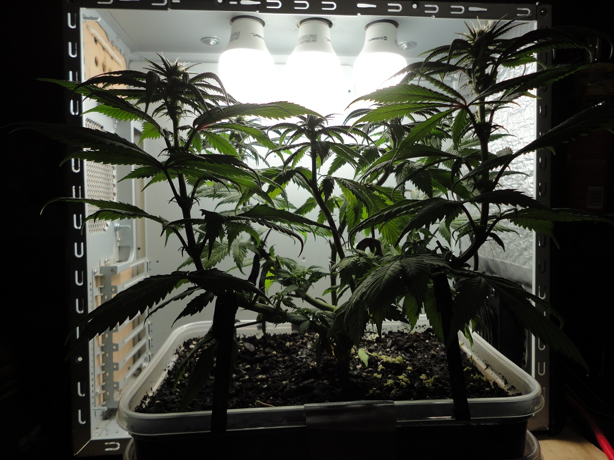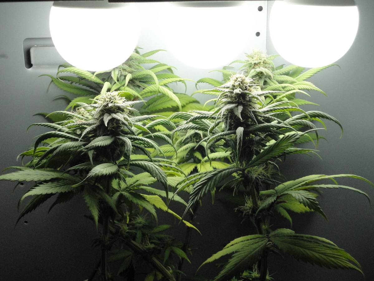 3rd grow 6 weeks later- 3 2700k bulbs bad idea, after 2 weeks plant turned to shit. Switched to 2- 5000k and 1- 2700k. Plant recovered somewhat, buds are small but dense.