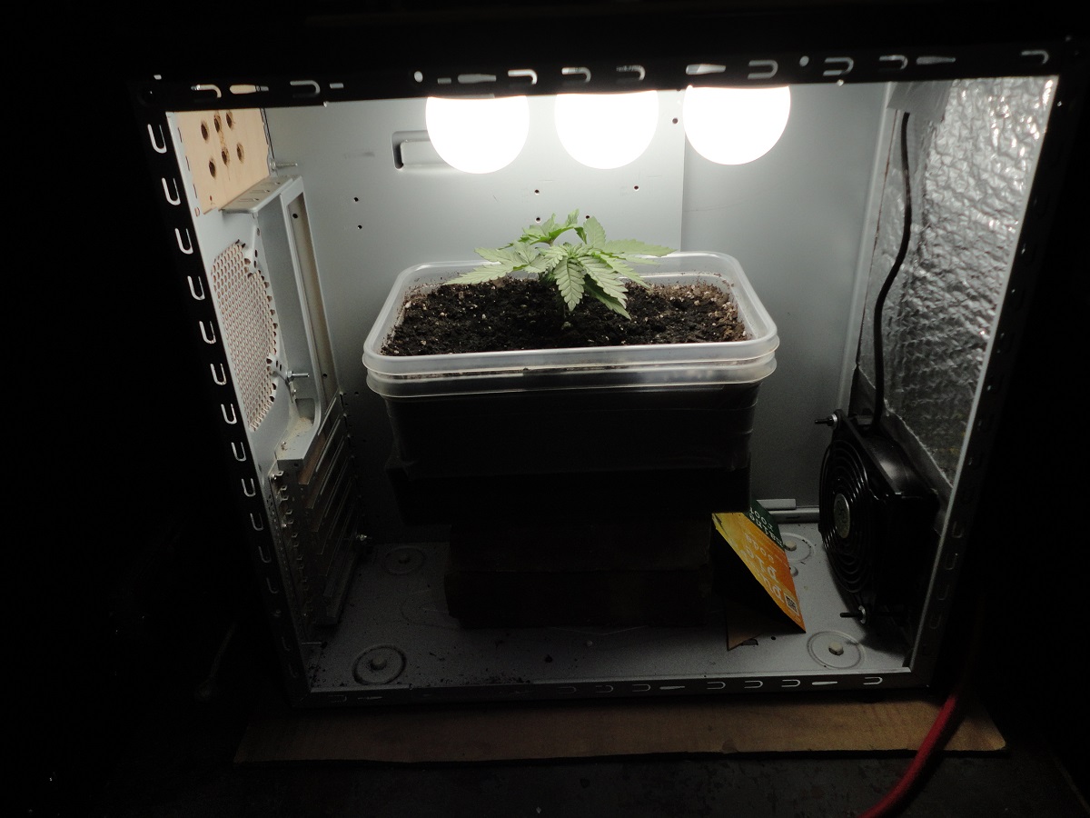 Old pc tower- 3 home depot 13 watt 5000k LEDs 110v fan